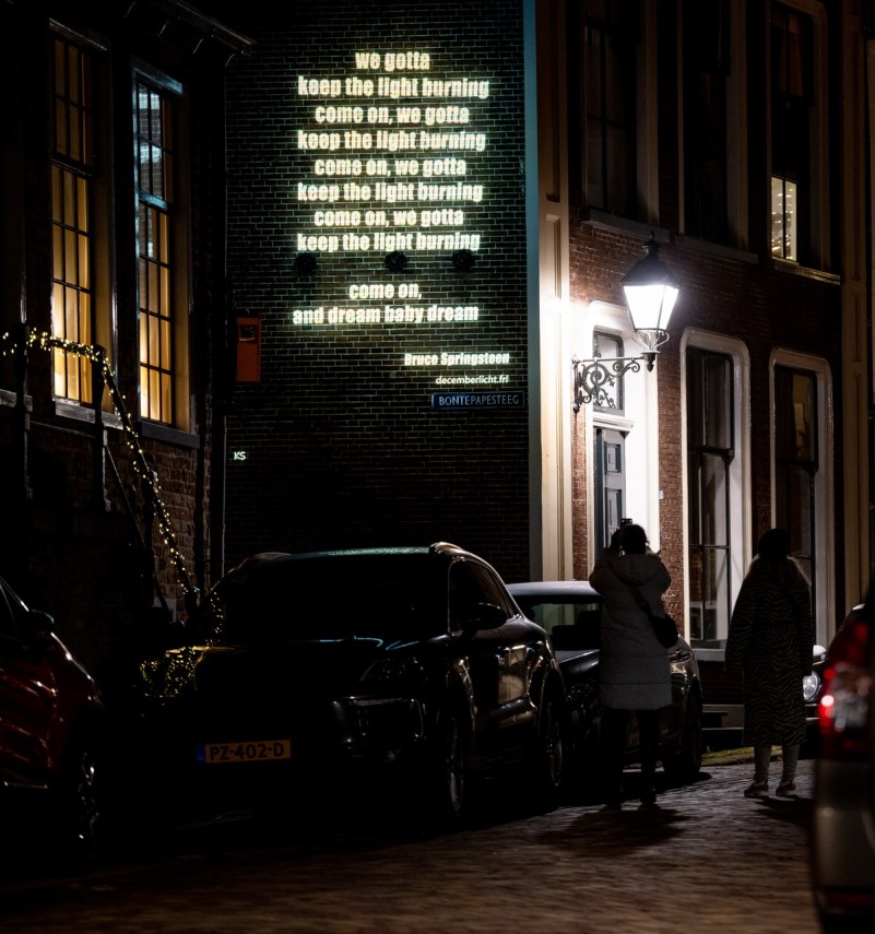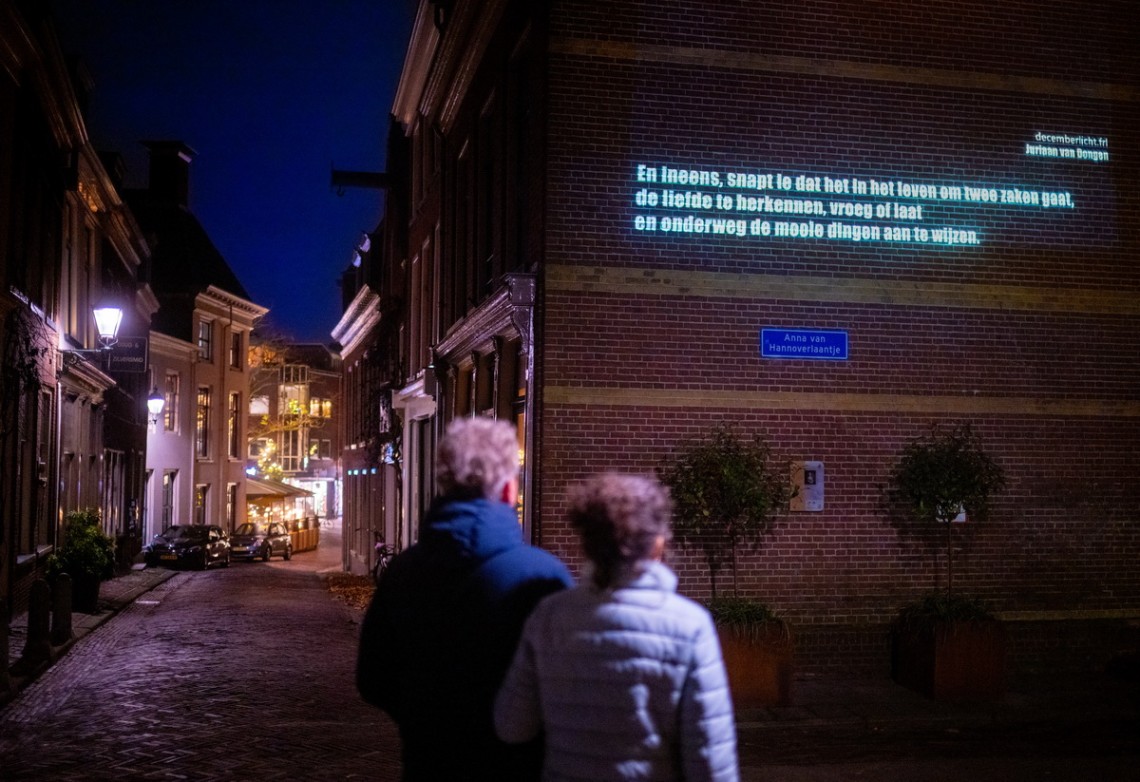 Decemberlicht is een mix van inspirerende animaties, verrassende gedichten, filosofische citaten en grappige filmpjes. De route loopt langs ongekende steegjes, zet overbekende monumenten letterlijk in een nieuw licht en nodigt je uit de wereld met een nieuwe blik te bekijken en heeft het citaat