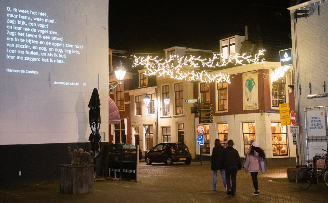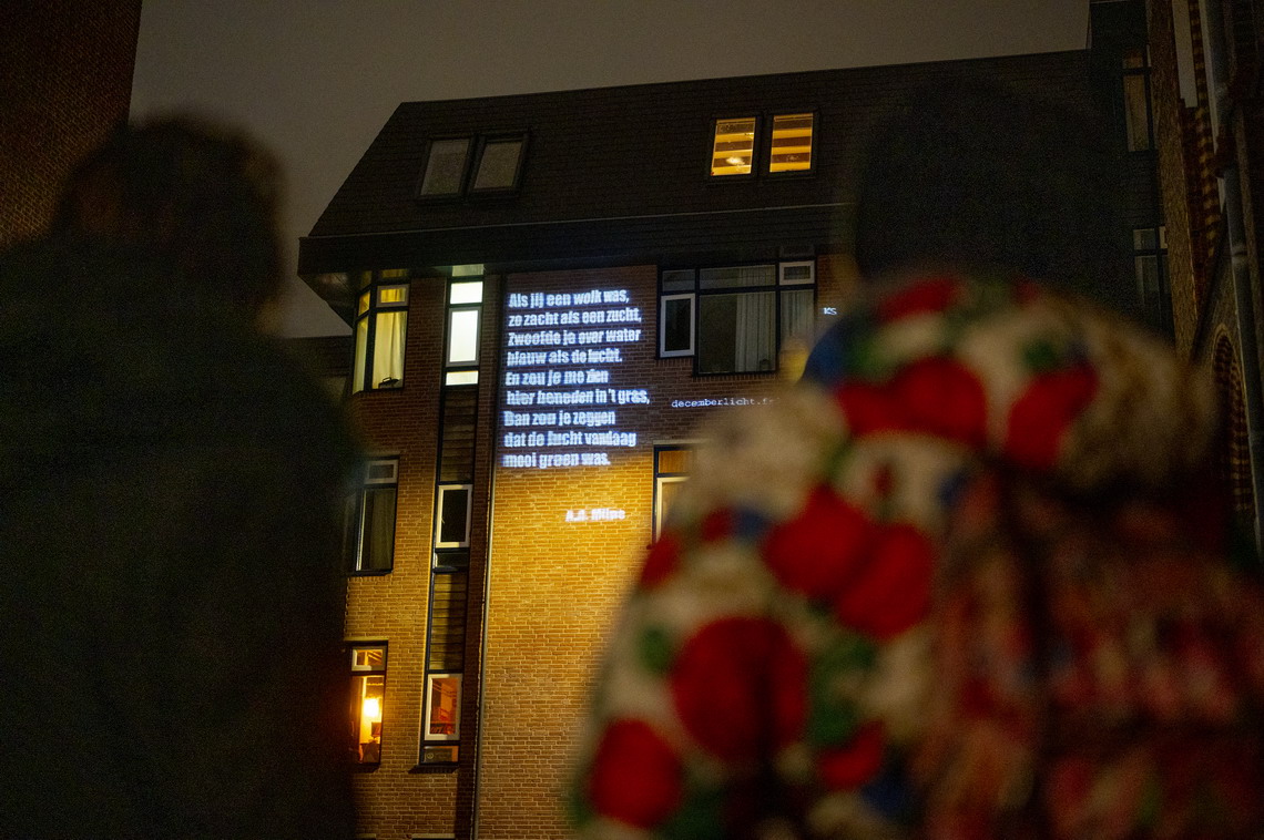 Decemberlicht is een mix van inspirerende animaties, verrassende gedichten, filosofische citaten en grappige filmpjes. De route loopt langs ongekende steegjes, zet overbekende monumenten letterlijk in een nieuw licht en nodigt je uit de wereld met een nieuwe blik te bekijken en heeft het citaat
